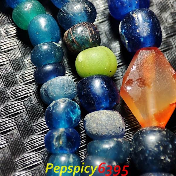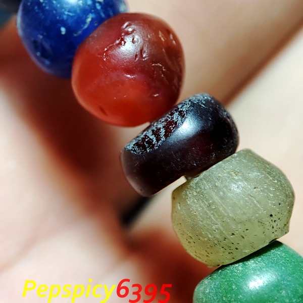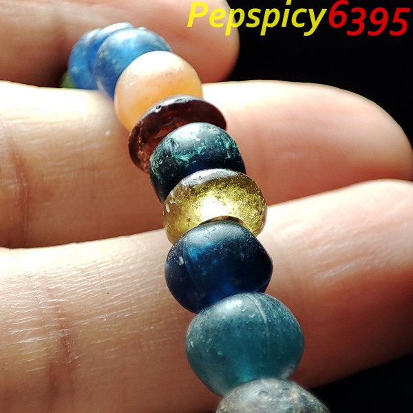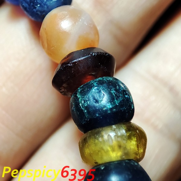 ลูกปัดแก้วโบราณ (ลูกปัดลมสินค้า) แหล่งกำพวน จังหวัดระนอง ร้อยคละสี ขนาด 10-4 มิล.