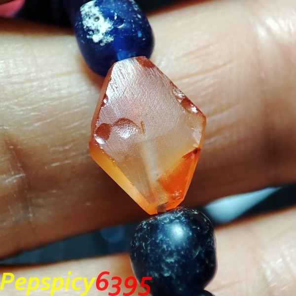 มีลูกปัดโบราณโกเมน แหล่งพม่า ขนาด 3.5 x 7 มิล. และ 4 x 7 มิล. จำนวน 1 คู่ เป็นตัวแถมมาในเส้น