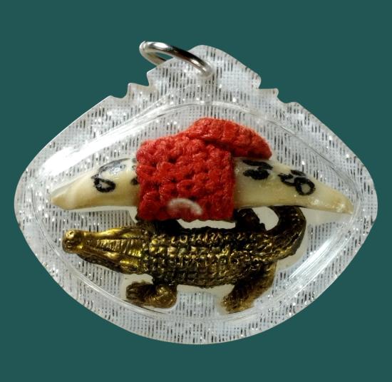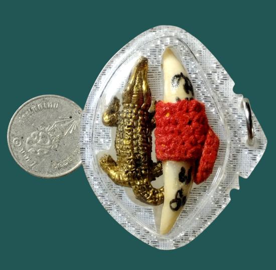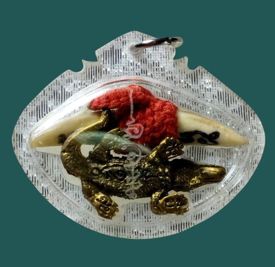 เขี้ยวจระเข้ มีจาร และ รูปหล่อพญาจระเข้ วัดปราณบุรี จ.ประจวบคีรีขันธ์ รุ่นเงินไหลมา มหาเศรษฐี ในเลี่ยมเข้าชุดและมีจารที่เลี่ยมกำกับเพื่อเป็นสิริมงคลให้ดียิ่งๆขึ้น |