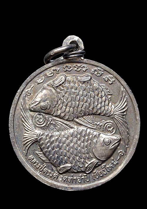 เหรียญปลาตะเพียน ครูบาดวงดี ปี 2525 เนื้อกะไหล่เงิน วัดท่าจำปี จ.เชียงใหม่ สวยๆครับ