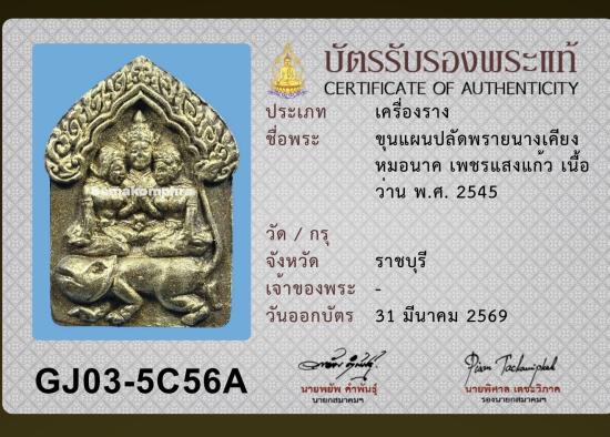 ขุนแผนปลัดพรายนางเคียง ปู่หมอนาค เพชรแสงแก้ว ปี 2545 เนื้อว่าน พร้อมบัตรรับรองสมาคม
