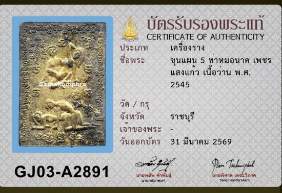 ขุนแผน 5 ท่า ปู่หมอนาค เพชรแสงแก้ว ปี 2545 เนื้อว่าน พร้อมบัตรรับรองสมาคม