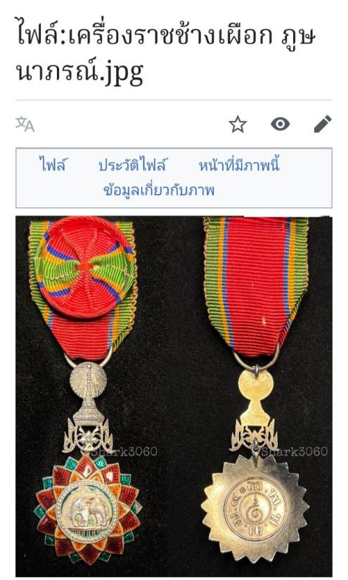 เครื่องราชอิสริยาภรณ์ช้างเผือก ชั้นที่ 4 แบบเดิม "ภูษณาภรณ์"สีลงยาสมบูรณ์ |