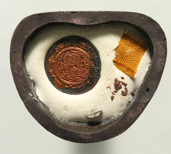 ลอยองค์พระบูชาหลวงพ่อทวด ใต้ฐานฝังเหรียญจีวร และ แร่เหล็กไหล เนื้อ ทองแดงรมดำ รุ่น แซยิดเศรษฐี ๙๗" พ่อท่านพรหม วัดพลานุภาพ ปี 2556 พิธีใหญ่ สวยและหายาก