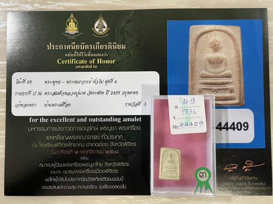 สร้างปี 2495 สภาพสวย สมบูรณ์ ไม่หักไม่ซ่อม รับประกันพระแท้ ดูง่าย ใบประกาศรางวัลที่3งานสมาคม