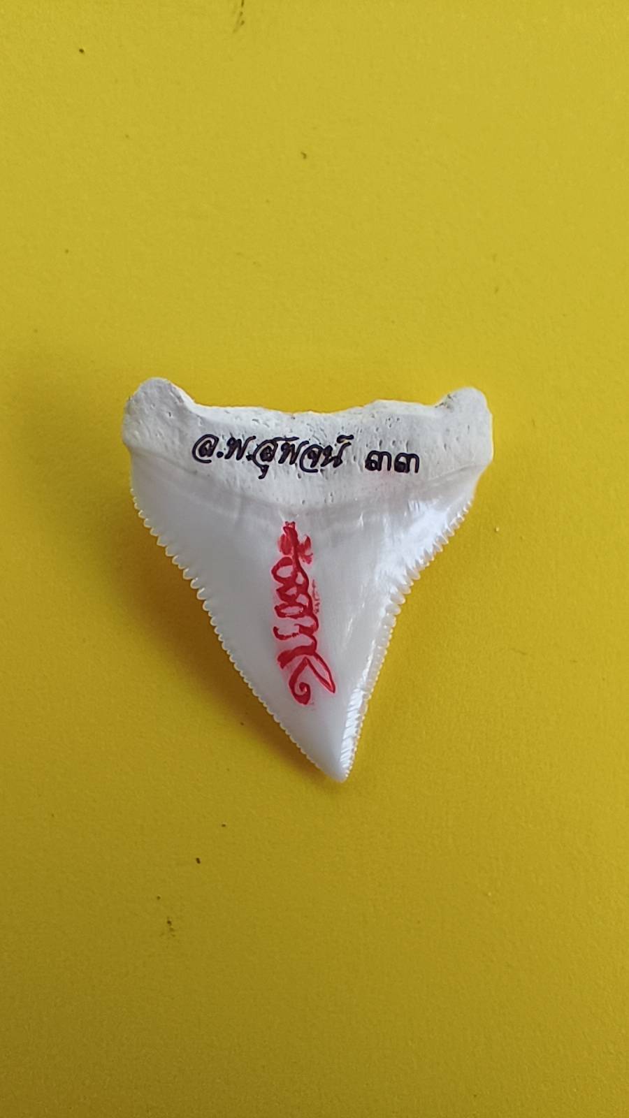 ฟันฉลามแกะหน้าเสือ รุ่น เสือเรียกทรัพย์ ลพ.สุพจน์ วัดห้วงพัฒนา จ.ตราด หมายเลข "33" พร้อมกล่องเดิมจากวัด สร้างน้อยแค่ 59 ชิ้น |