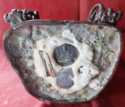 เนื้อสัมฤทธิ์ หน้าตัก 5 นิ้ว ใต้ฐานฝังวัตถุมงคลหลวงปู่กาหลง จำนวนสร้าง 999 องค์ มีหมายเลข ๒๑๒