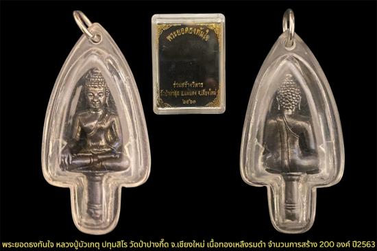 พระยอดธงทันใจ หลวงปู่บัวเกตุ ปทุมสิโร วัดป่าปางกึ๊ด จ.เชียงใหม่ เนื้อทองเหลืงรมดำ จำนวนการสร้าง 200 องค์ ปี2563 เคาะเดียว