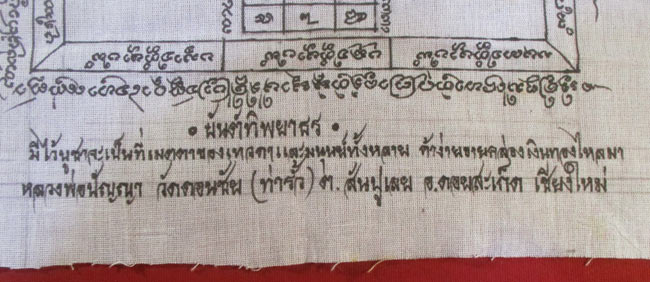ผ้ายันต์ ทิพยาธร หลวงพ่อปัญญา วัดดอนชัย (ท่ารั้ว) ต.สันปูเลย อ.ดอยสะเก็ด จ.เชียงใหม่ ครับ |