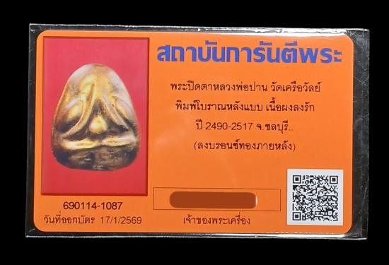 เคาะเดียวต่ำกว่าทุน...ปิดตาหลวงพ่อปาน วัดเครือวัลย์ ชลบุรี พิมพ์โบราณหลังแบบ เนื้อผงลงรัก ยุคต้น ปี 2490-2517 พระสวยครับ พร้อมบัตรรับรองจากทางเว็บ