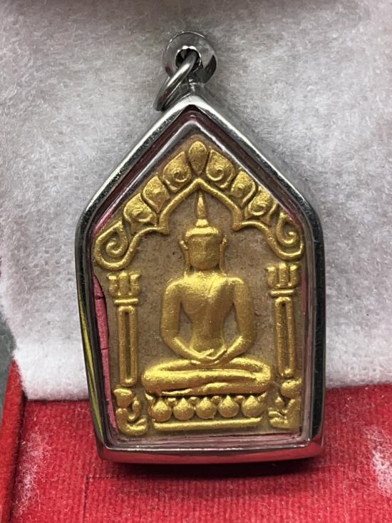 พระขุนแผนผงพรายกุมาร พิมพ์ใหญ่ วัดโพนงาม จ.ฉะเชิงเทรา รุ่นธงชัยราชาโชค จัดสร้างปี 2557 เนื้อผงทาทองด้านหน้า