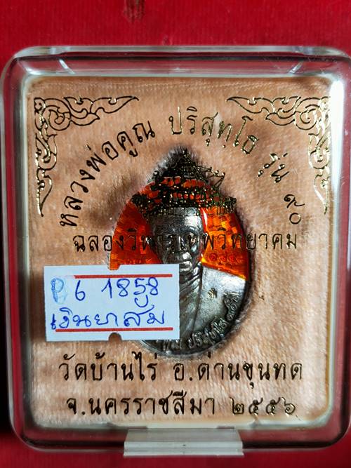 เหรียญหลวงพ่อคูณ ปริสุทโธ รุ่น ฉลองวิหารเทพ ออกวัดบ้านไร่ ปี 56 เนื้อ เงินลงยาสีส้ม หมายเลข 1858 สภาพสวย เคาะเดียวแดง |