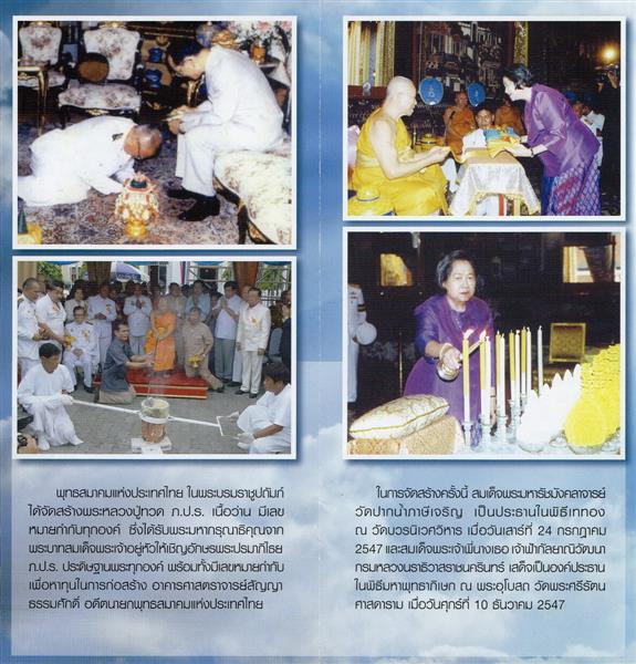 ในการจัดสร้าง พุทธสมาคมแห่งประเทศไทยในพระบรมราชูปถัมภ์ ได้กราบบังคมทูลพระบาทสมเด็จพระเจ้าอยู่หัวขอพระราชทานพระบรมราชานุญาตอัญเชิญอักษรพระปรมาภิไธย ภปร. เพื่อนำมาประดิษฐานด้านหลังพระเครื่องหลวงปู่ทวด ที่จัดสร้าง เพื่อมอบให้เครือพุทธสมาคมทั่วประเทศ และนำมาให้ประชาชนทั่วประเทศเช่าบูชา เพื่อนำรายได้รวมสมทบทุนสร้าง อาคารศาสตราจารย์สัญญาธรรมศักดิ์ เพื่อใช้เป็นสถานที่ปฏิบัติธรรม มวลสาร หลวงปู่ทวด ภ.ป.ร. ที่นำมาจัดสร้างนั้น ประกอบด้วยมวลสารมหามงคล ผงวิเศษจากเกจิอาจารย์ทั่วประเทศ ดินจากสถานที่ศักดิ์สิทธิ์ทั่วประเทศ ว่านมงคล 108 อย่าง เกสรดอกไม้มงคล ดินกากยายักษ์ แร่ที่ผสมการสร้างพระหลวงพ่อทวด ปี 2497 ช่อชนวนพระหลวงปู่ทวดหลังเตารีด ปี 2505 ช่อพระคันธาราษฎร์ หลวงพ่อน้อย วัดธรรมศาลา ช่อชนวนพระพุทธชินราชอินโดจีน ปี 2485 ชนวนพระต่างๆอีกมากมายและแผ่นยันต์ แผ่นจาร จากพระเกจิอาจารย์ดัง 9 ประเทศ