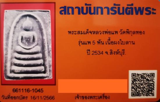 +++พร้อมบัตร G-Pra+++สมเด็จแพ 5 พัน เนื้อผงใบลาน ปี 2534 หลวงพ่อแพ วัดพิกุลทอง #135