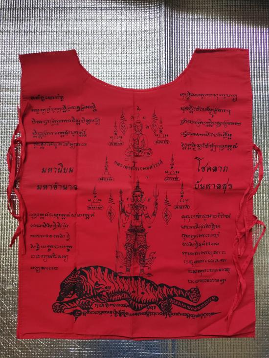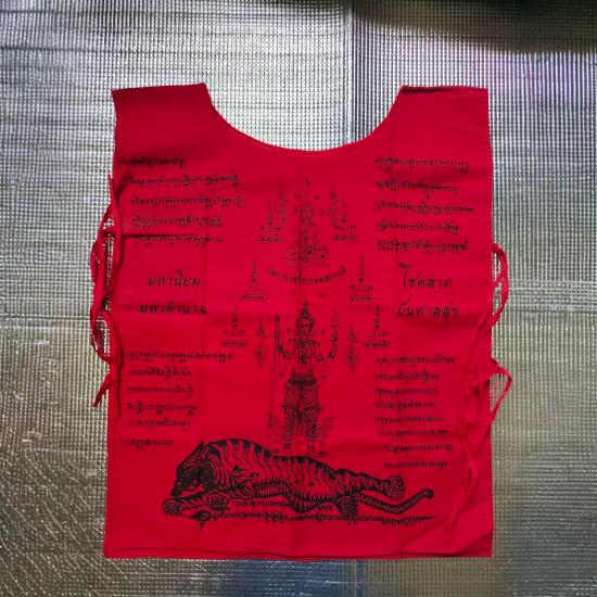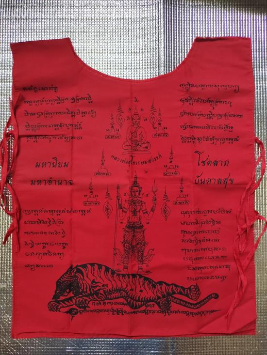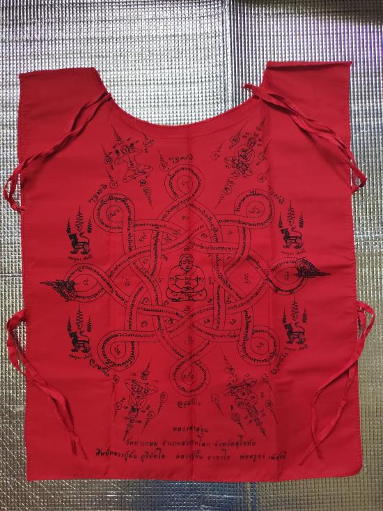 เสื้อยันต์เนื้อผ้าสีแดง.. สร้างและอธิฐานจิตปลุกเสกโดยพระครูสุขุมธรรมนิเทศก์ (สุทน) แต่ชาวบ้านมักเรียกกันว่าหลวงพ่อสุขุม วัดท่าเกษม ต.เมืองบางยม อ.สวรรคโลก จ.สุโขทัย เสื้อยันต์ตัวนี้สภาพใหม่เอี่ยมไม่ผ่านการใช้มาก่อน |