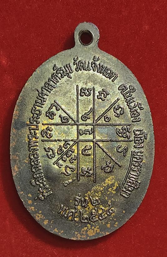 ข้อความรอบยันต์: "ที่ระลึกหลวงพระประธานศาลาการเปรียญ วัดแจ้งนอก ในเมืองนครราชสีมา"