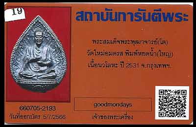 หยดน้ำรูปเหมือนสมเด็จโต พิมพ์ใหญ่ เนื้อนวโลหะ ปี2531 วัดใหม่อมตรส กทม