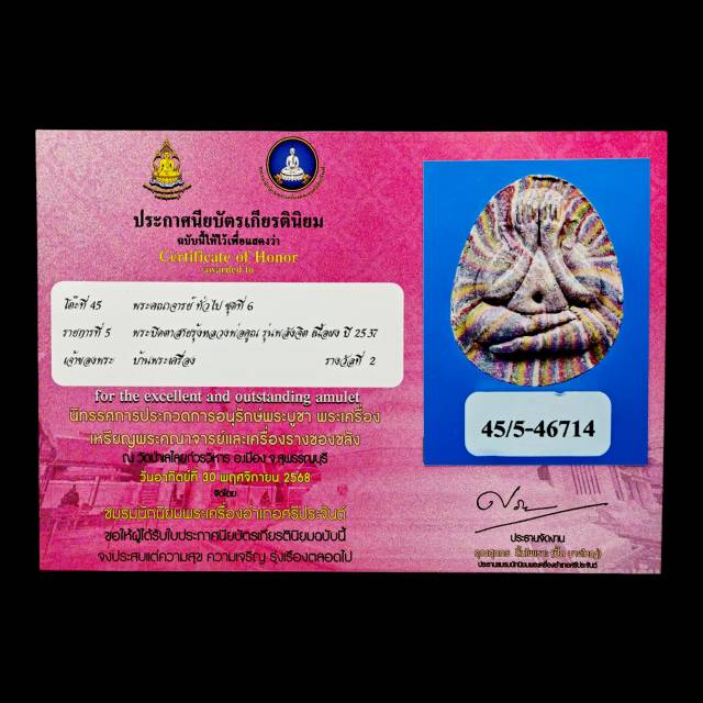 พระปิดตาสายรุ้งหลวงพ่อคูณ เนื้อผง ปี2537 พร้อมใบประกาศฯ