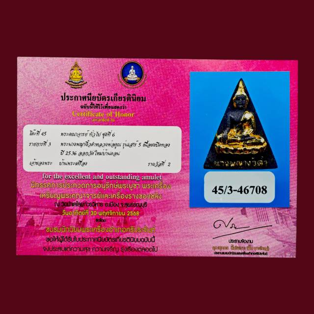 นางพญางิ้วดำหลวงพ่อคูณ รุ่นเสาร์ 5 เนื้อผงปิดทอง ปี 2536 พร้อมใบประกาศสมาคมฯ