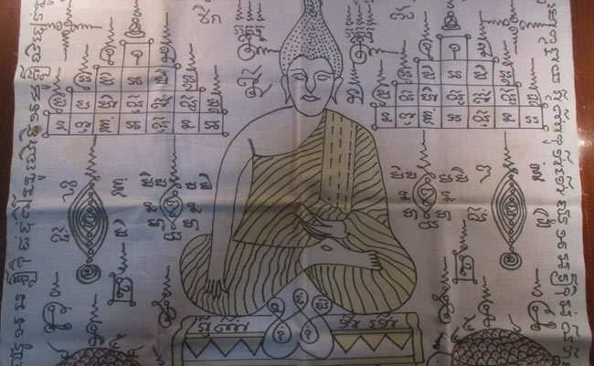 ผ้ายันต์ วัดโคกมะยม จารยันต์ด้วยมือ ครับ