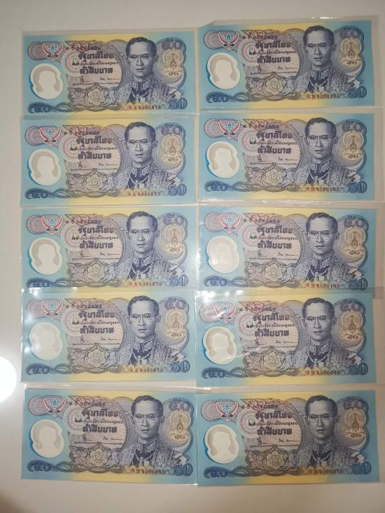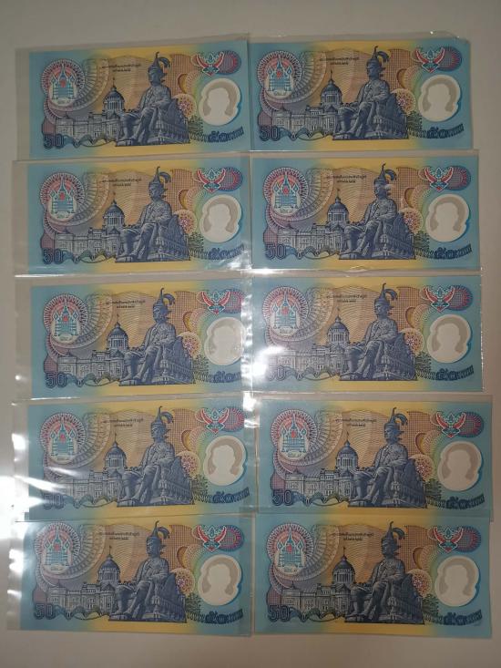 ธนบัตรโพลิเมอร์ 50 บาท ร.9 รวม 10 ฉบับ เคาะเดียว ตามรูป |