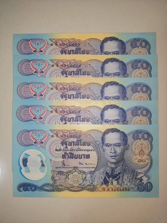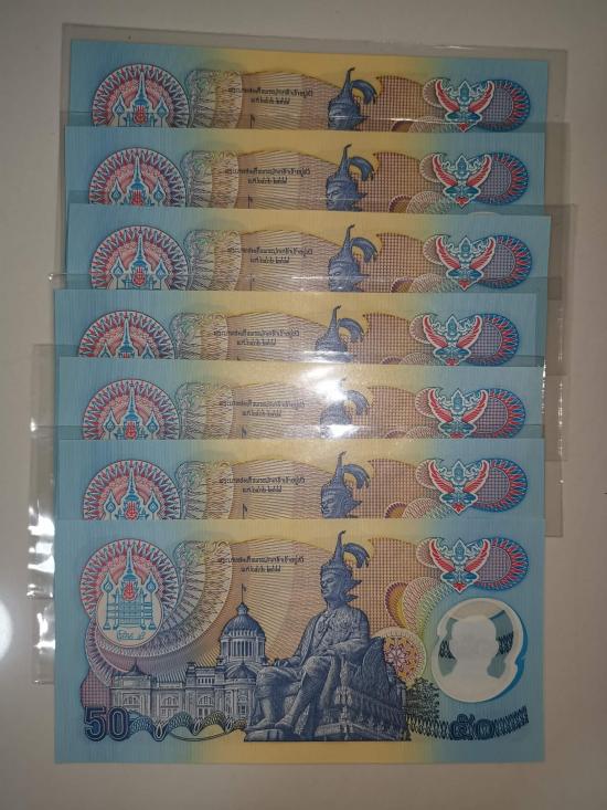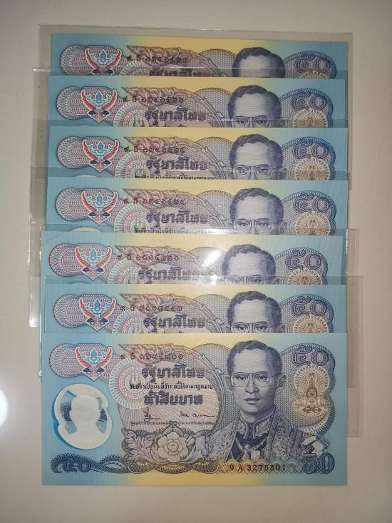 ธนบัตรโพลิเมอร์ 50 บาท ร.9 รวม 12 ฉบับ เคาะเดียว ตามรูป |