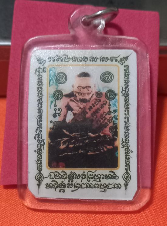 เคาะเดียว รูปถ่าย หลวงปู่เผือกวัดสาลีโข เลี่ยมกันน้ำพร้อมแขวน หลังจารอักขระ