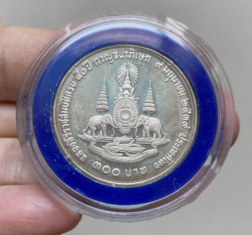 เหรียญในหลวง ร.๙ กาญจนาภิเษก ขนาด300บาท เนื้อเงินแท้ พร้อมกล่อง สวย ลงวัดใจ