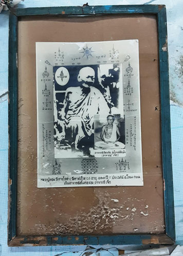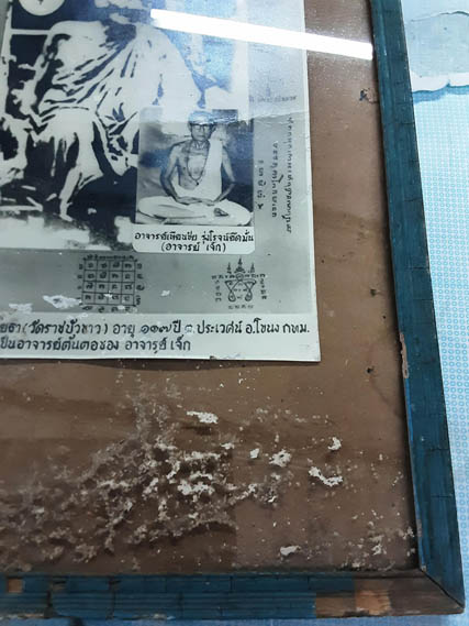 กรอบรูปเก่าหลวงปู่ทอง วัดราชโยธา กระหนังไก่ผิวปรอท ขนาด 32.5 X 22 ซม. อ. เจ๊กสร้าง หายาก