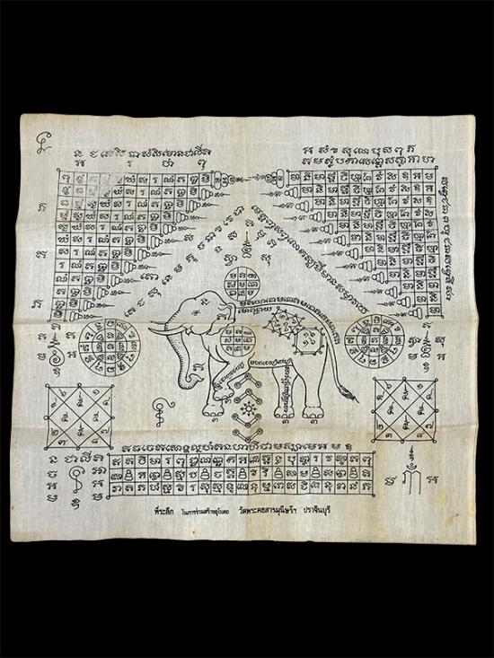 110 / ผ้ายันต์คชสาร วัดพระคชสารมุนีษรีฯ จ.ปราจีนบุรี สวยเดิมๆตามรูป ขนาดกว้าง 17.5 นิ้ว x ยาว 16 นิ้ว |