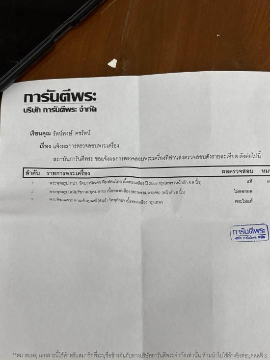 ข้อมูลยึดตาม ผลที่ตรวจของการันตีพระ