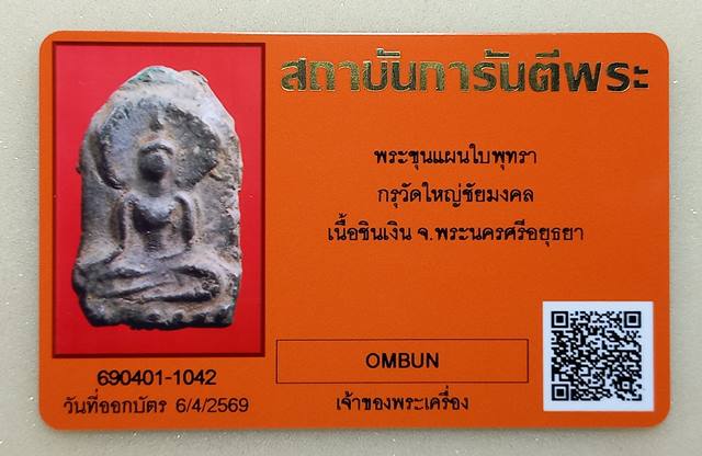 +++ พระขุนแผนใบพุทรา เนื้อชินเงิน กรุวัดใหญ่ชัยมงคล จ.พระนครศรีอยุธยา + บัตร G-Pra ++