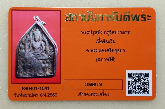 +++ พระปรุหนัง เนื้อชินเงิน กรุวัดปราสาท จ.พระนครศรีอยุธยา + บัตร G-Pra ++