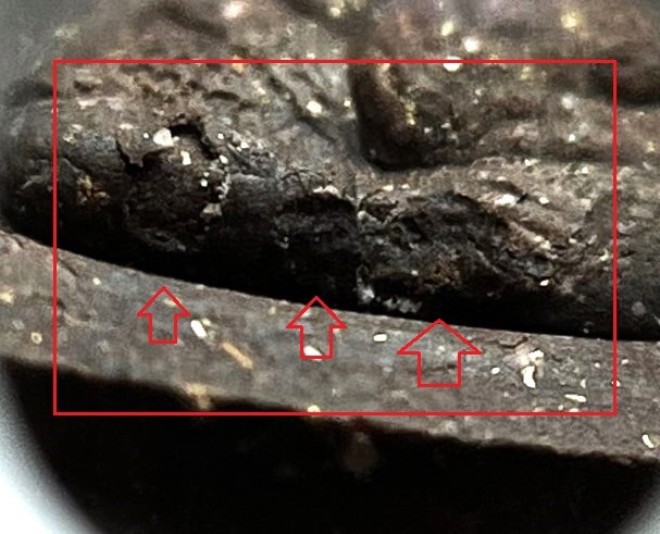 -มีตำหนิกระเทาะแขนราหูองค์บน องค์ที่ลูกศรชี้ภาพที่1 มีภาพขยายด้านล่าง