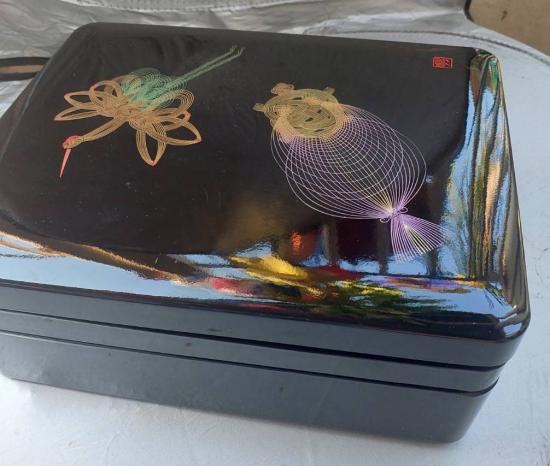 ***วัดใจ***กล่องไม้เครื่องเขินญี่ปุ่น (Japanese lacquerware) ประเภทวาจิมะ-นูริ (Wajima-nuri) ลายนกกระเรียนและเต่า" ซึ่งเป็นสัญลักษณ์ของการมีอายุยืน ขนาด13*11นิ้ว หนา 5 นิ้ว 2 ชั้น