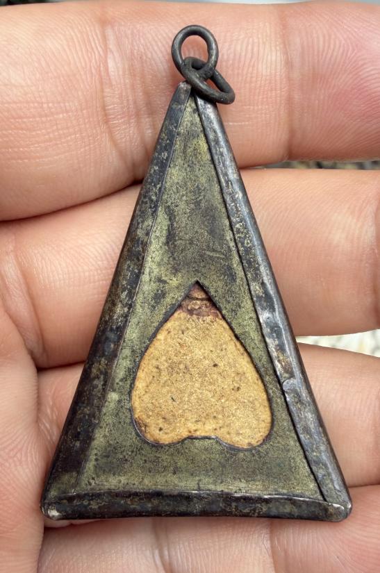 พระกรุวัดสามปลื้ม พิมพ์สามเหลี่ยมใหญ่ เลี่ยมเงินเก่า หัก1แผล