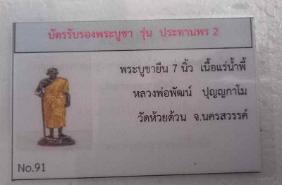 พระบูชาสูง 7 นิ้ว หลวงพ่อพัฒน์ วัดห้วยด้วน รุ่นประทานพร 2 แร่เหล็กน้ำพี้จีวรทอง หมายเลข 91 สภาพสวย เดิมๆ..