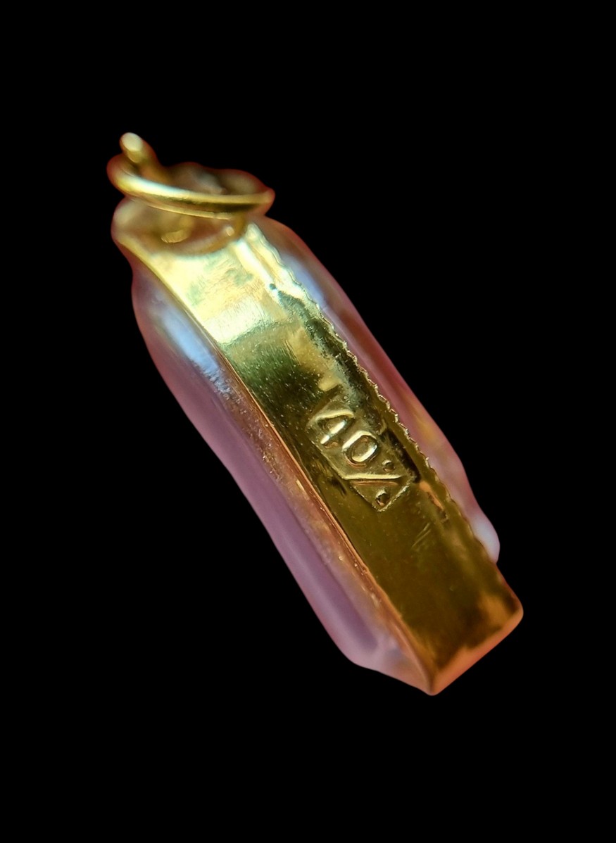 พระปรกใบมะขาม พระพุทธโสธร เลี่ยมทองจับขอบ ไม่ทราบปีสร้างครับขนาดเล็ก เหมาะสำหรับเด็ก หรือ สตรี เลี่ยมทองงานแบบจิวเวลรี่ มีตอกโค้ดด้านข้าง และเปอร์เซ็น ห่วงเชื่อมเดิมพระบ้านแบ่งปันให้ไปบูชาครับ