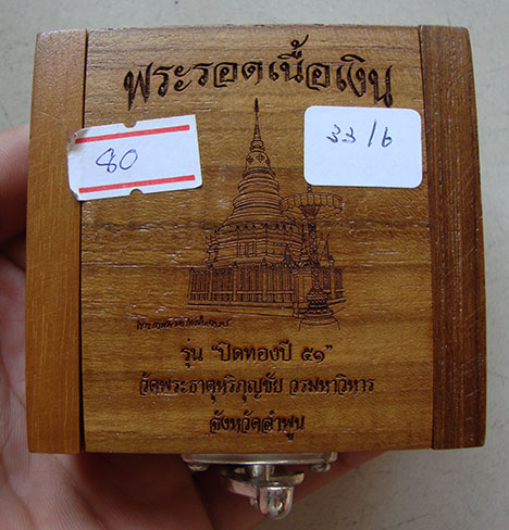 พระรอดเนื้อเงิน รุ่นปิดทอง ปี51 วัดพระธาตุหริภุญชัย จ.ลำพูน หมายเลข 80 สร้างน้อย กล่องไม้เดิมอย่างดี สภาพสวยครับ