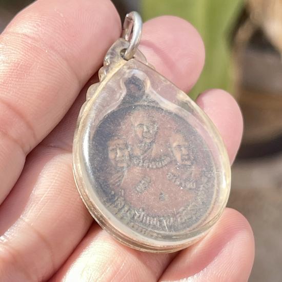เคาะเดียวแดงเหรียญสามอาจารย์ หลวงปู่มั่น อาจารย์ฝั้น หลวงปู่แหวน ปี ๒๕๒๐ เลี่ยมกันน้ำพร้อมใช้