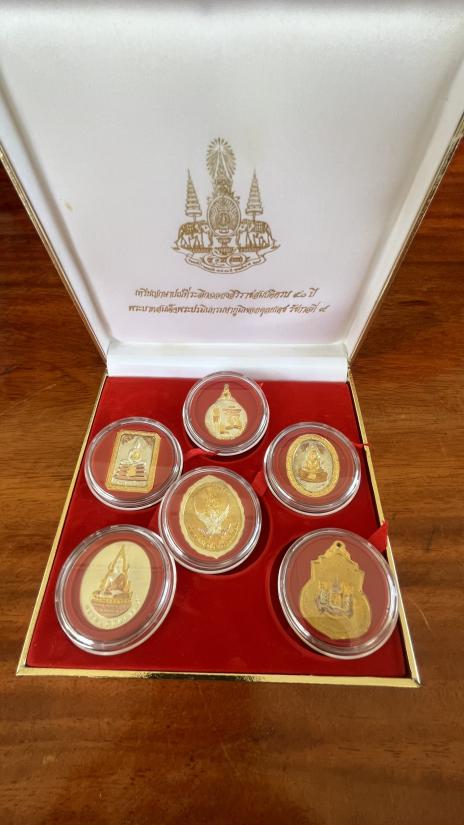 ชุดเหรียญกษาปณ์ที่ระลึกฉลองสิริราชสมบัติครบ 50 ปี ร.9 พระพักตร์ ร.5 มีทั้งหมดรวม 6 เหรียญ เนื้อสามกษัตรย์ สวยเดิมพร้อมกล่องเดิมครับ