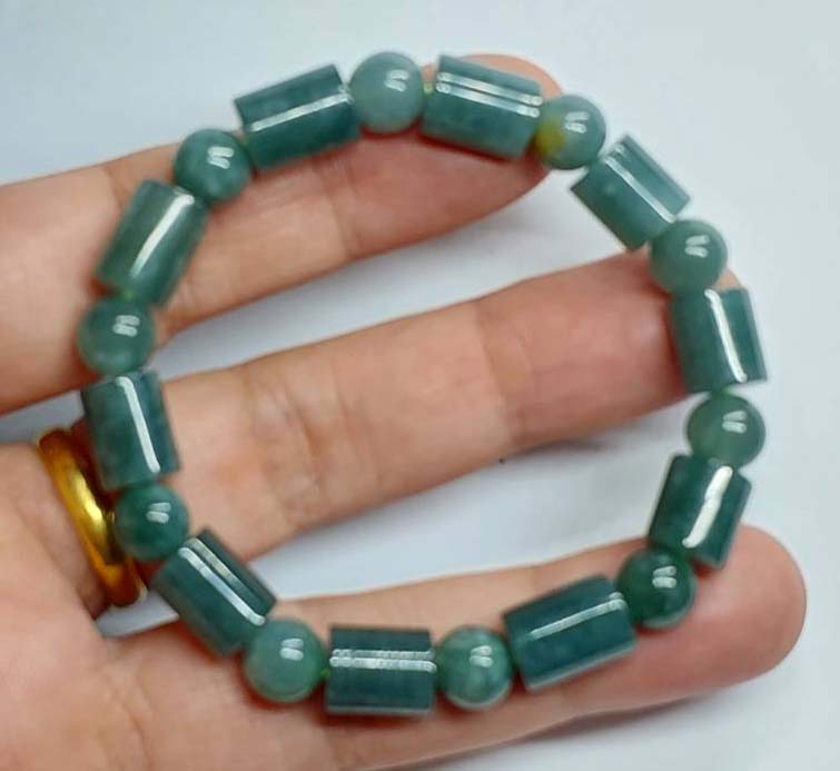 สร้อยข้อมือหยกพม่า สีโทนบลูสลับเขียว เม็ดกลมสลับทรงกระบอก ขนาด 7 มิล