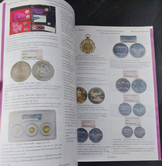 หนังสือที่รวบรวมสินค้าประมูล ราคาเริ่มต้นการประมูล สิ่งสะสมหายาก แสตมป์ เหรียญ ธนบัตร วัตถุโบราณ นาฬิกา พระเครื่องยอดนิยม และสิ่งสะสมอื่นๆ