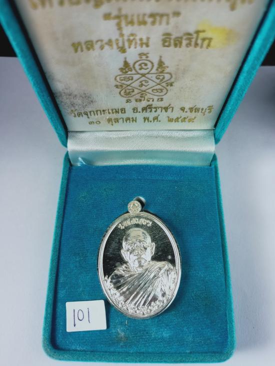 เหรียญเมตตาห่มคลุม (รุ่นแรก) หลวงปู่ทิม (ออกวัดจุกกะเฌอ) เนื้อเงิน ไม่ตัดปีก หลังแบบ เบอร์ 101 พร้อมกล่องครับ