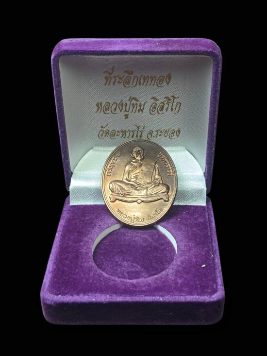 เหรียญเจริญพร ๙ บูรพาจารย์ หลวงปู่ทิม อิสริโก วัดละหารไร่ จ.ระยอง หมายเลข 326 ปี 2556 เนื้อนวะโลหะ + กล่องกำมะหยี่เดิม
