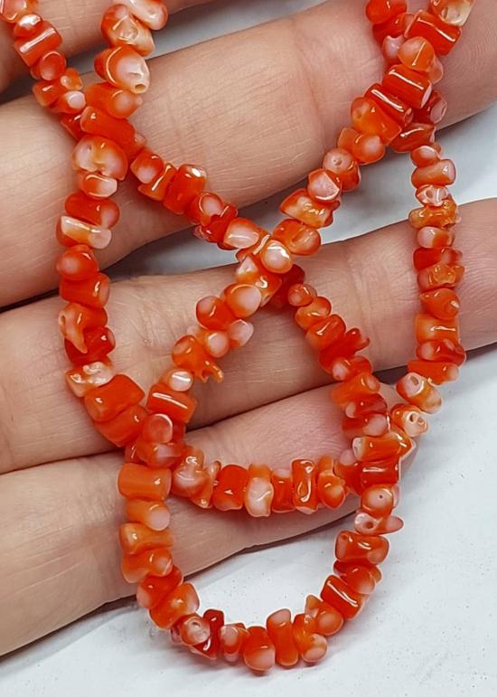 ***วัดใจ***สร้อยคอวัสดุธรรมชาติ ปะการังแดง ญี่ปุ่น (Japanese coral necklace) ยาว 16 นิ้ว