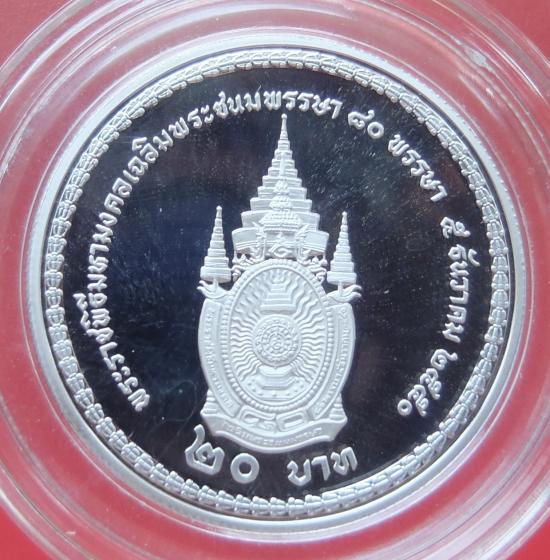 เหรียญกษาปณ์ 20 บาท รัชกาลที่ 9 ที่ระลึก 80 พรรษษ ปี 2550 เนื้อนิเกิ้ล ขัดเงิน