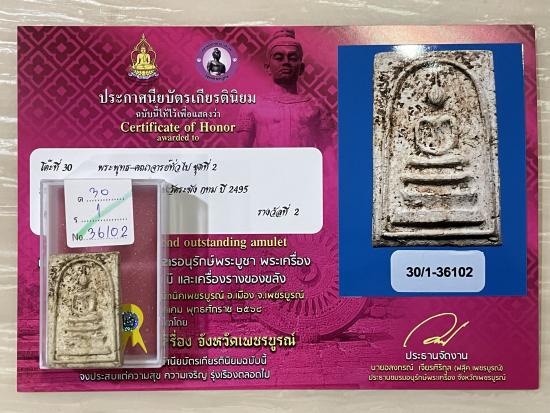 สร้างปี 2495 สภาพสวย สมบูรณ์ ไม่หักไม่ซ่อม รับประกันพระแท้ ดูง่าย ใบประกาศรางวัลที่2งานสมาคม