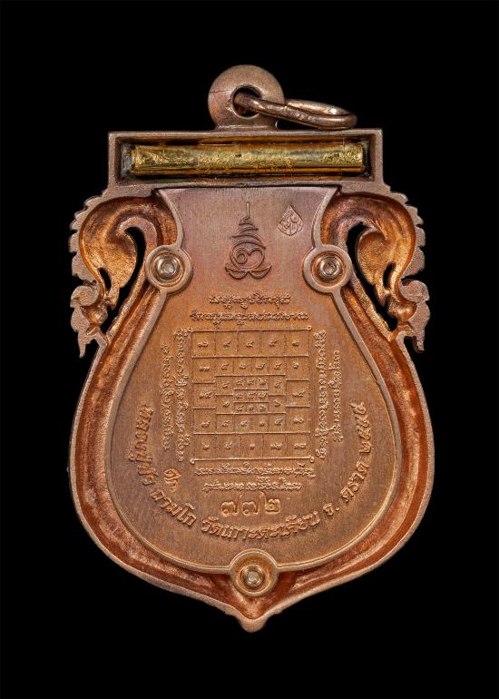 เหรียญเสมาฉลุ รุ่น บงกชบูรพา หลวงปู่บัว วัดศรีบุราพาราม จ.ตราด เนื้อนวะ หลังตะกรุดทองคำ เลข 772