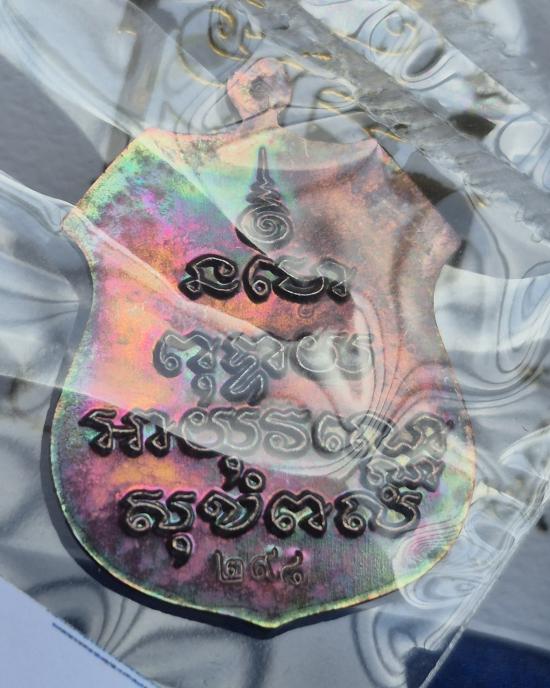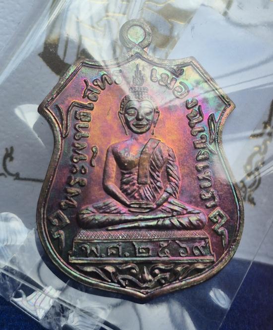 เหรียญโล่ หลวงพ่อโสธร รุ่นเจ้าสัว ปลุกเสกติดต่อกัน5วันเกจิ500กว่ารูป เนื้อทองแดงผิงรุ้ง เลข 298